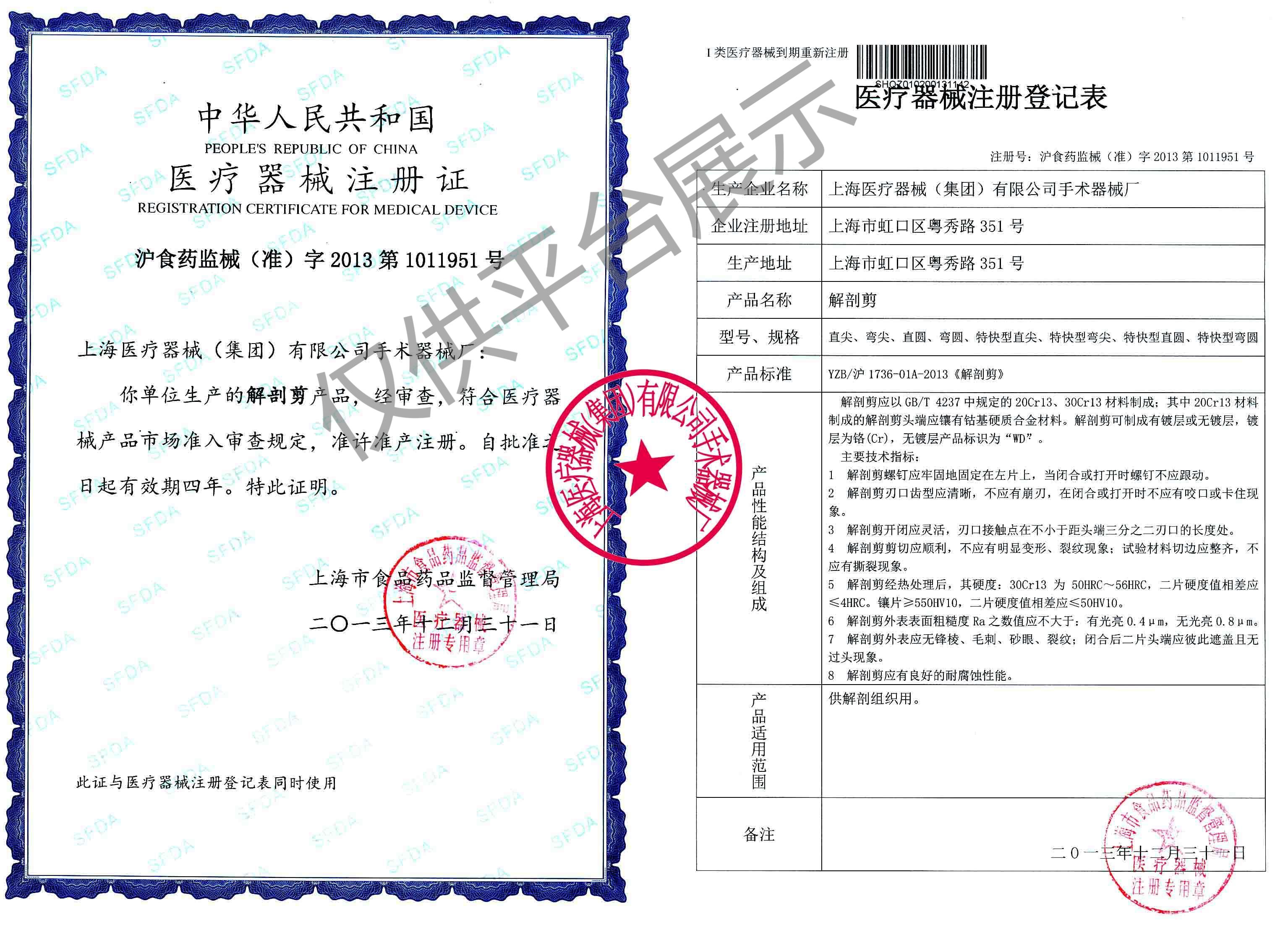 “上海金鐘牌”解剖剪