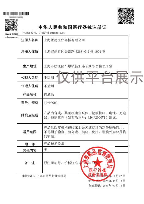 | 產(chǎn)品名稱 : | 藍德醫(yī)用智能輸液泵LD-P2000 |