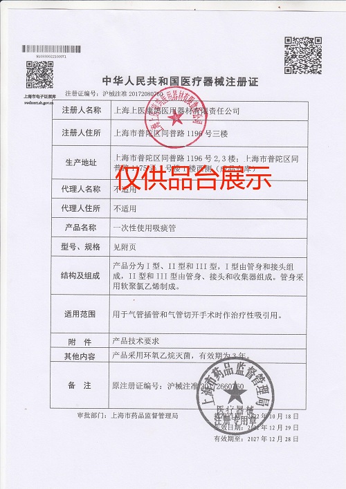 | 產(chǎn)品名稱 : | 上海康鴿一次性使用吸痰管III型(吸痰管配80ml痰(肺)液收集器)F6 |