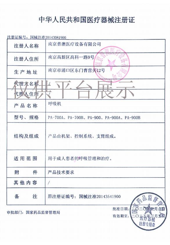 | 產(chǎn)品名稱 : | 南京普澳醫(yī)用呼吸機(jī)PA-900A型 |