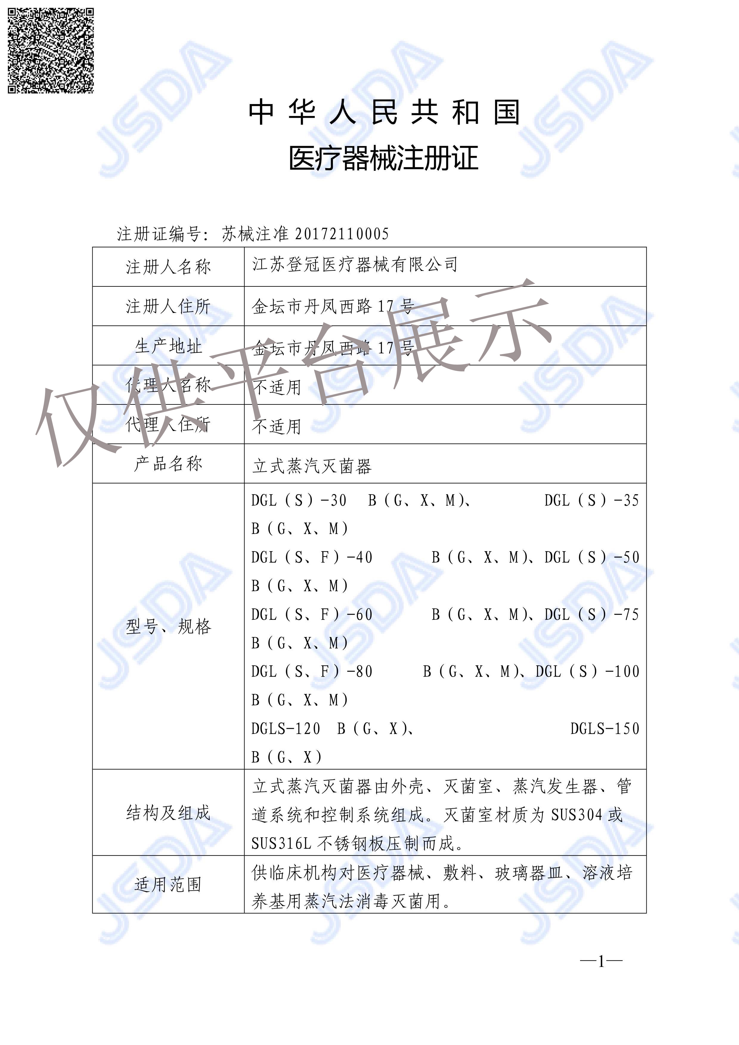 | 產品名稱 : | 登冠立式蒸汽滅菌器DGL-50G |