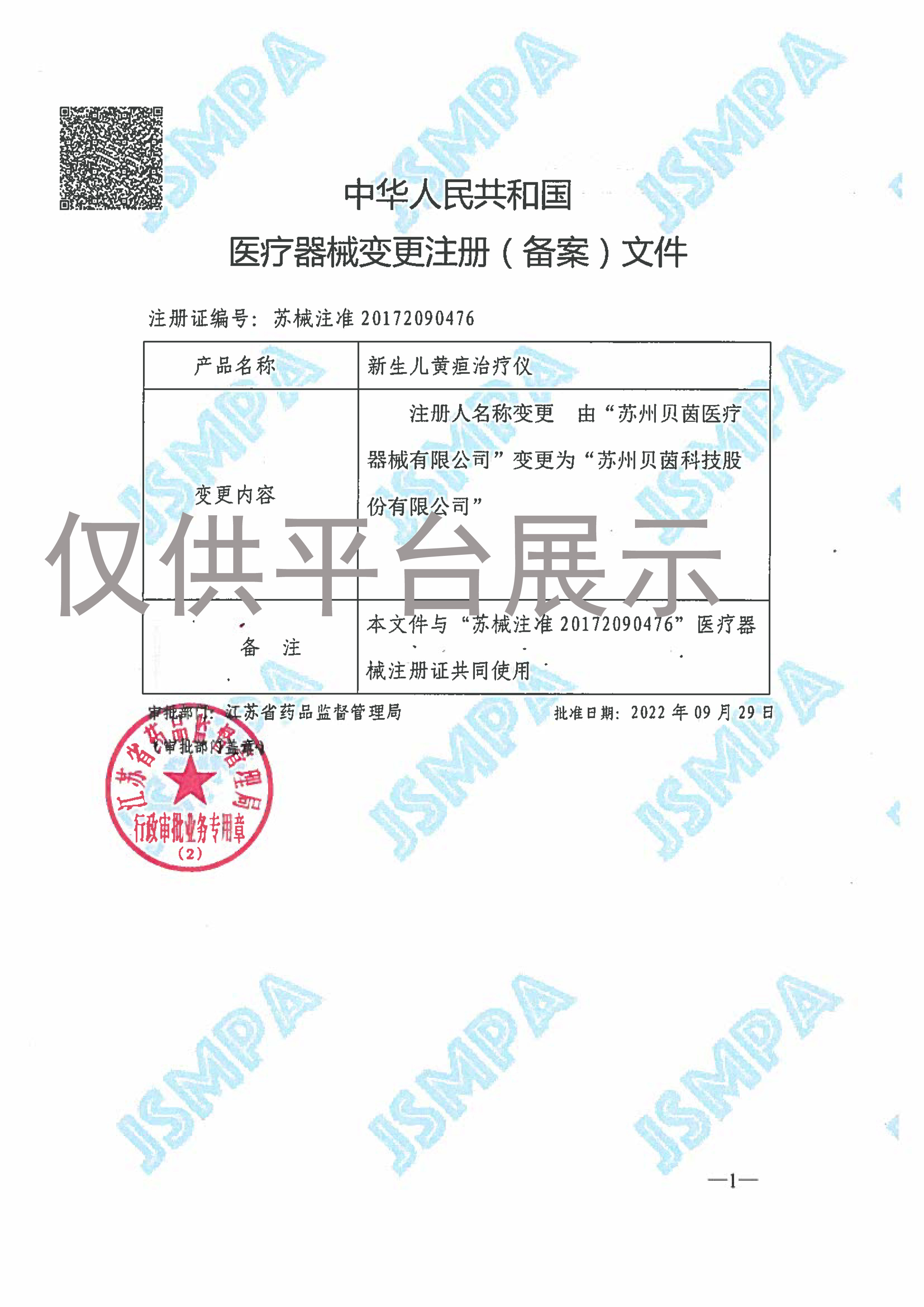 產(chǎn)品名稱 : 貝茵B(yǎng)eing 新生兒黃疸治療儀 BBP-1000B
