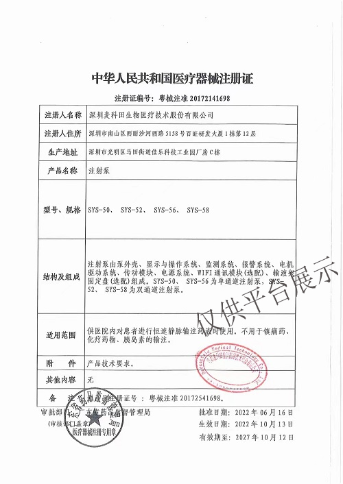 1、▲自動識別注射器:規(guī)格為5ml、10ml、20 ml、30 ml、50 ml或60 ml所有符合標準的注射器。