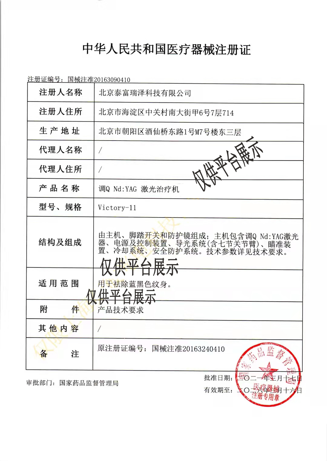 正品銷售 泰富 調(diào)Q Nd:YAG激光治療機(jī) Victory-11型,歡迎聯(lián)系訂購。