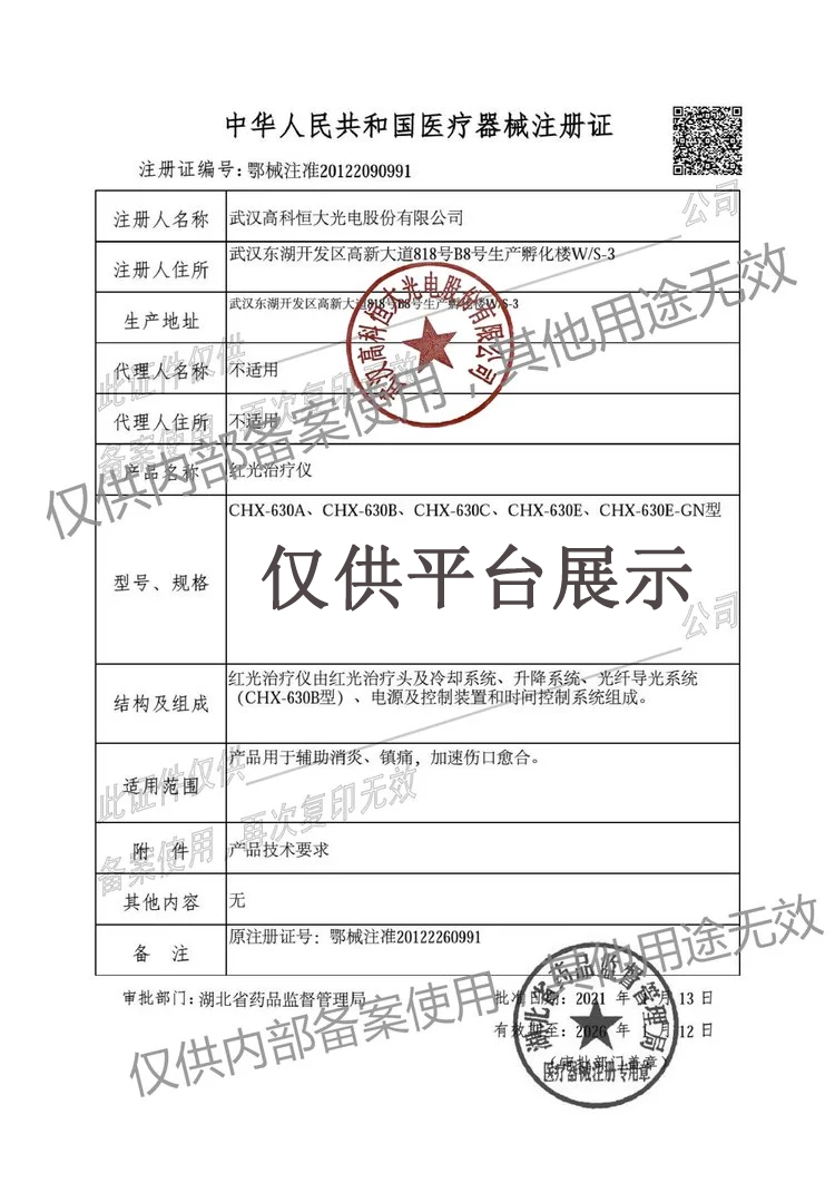 醫(yī)械網(wǎng)是一家提供高科恒大CHX-630E型紅光治療儀 (弧形紅藍(lán)光)價(jià)格、參數(shù)介紹等信息的展示平臺(tái),為您提供優(yōu)質(zhì)的高科恒大CHX-630E型紅光治療儀 (弧形紅藍(lán)光)產(chǎn)品,上海晚成醫(yī)療器械有限公司專注于各類醫(yī)療器械批發(fā)及零售,聯(lián)系電話:400-006-1850。