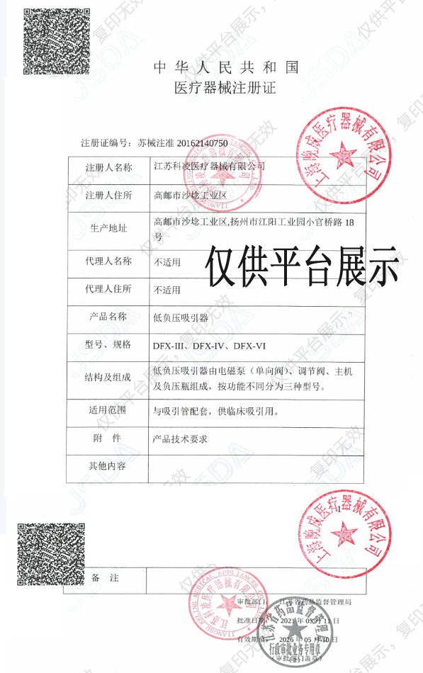 注冊(cè)證號(hào):蘇械注準(zhǔn)20162140750